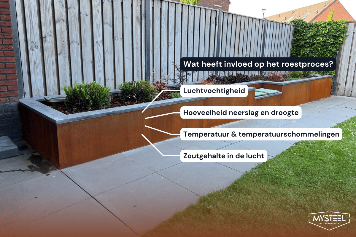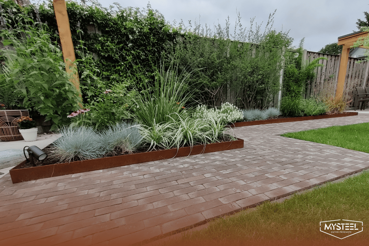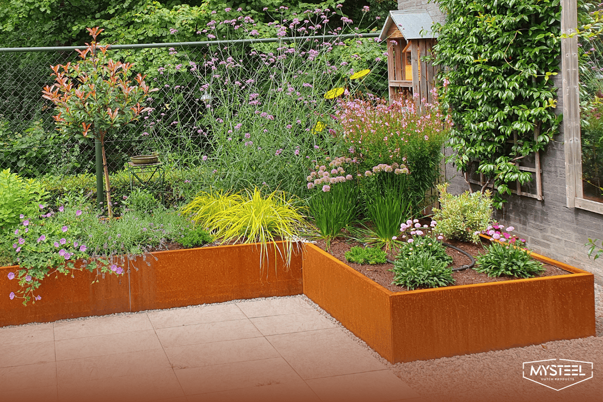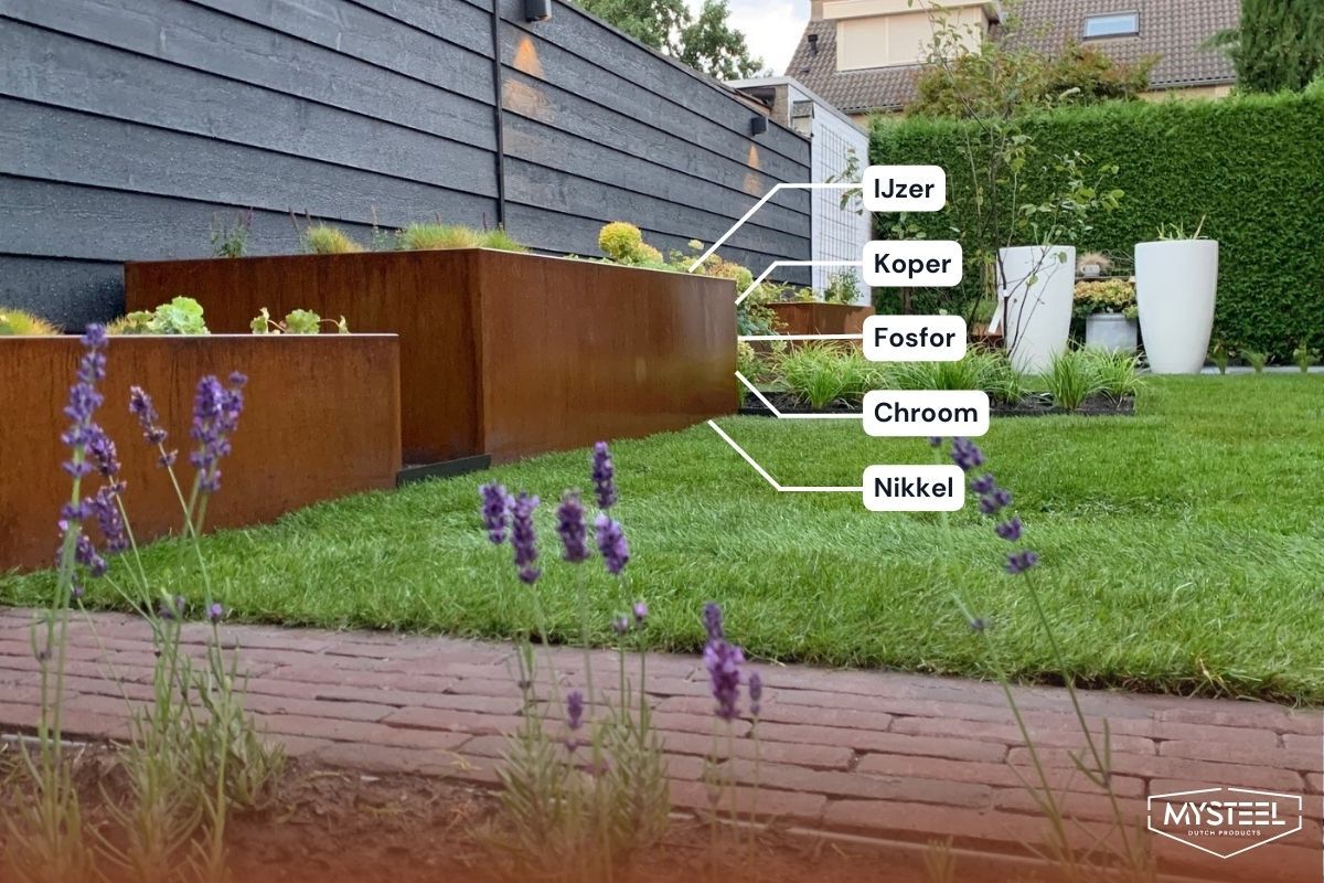 - Chez MySteel, nous utilisons le corten de métal entre autres pour des bacs à plantes, des tables d'eau et des bordures.