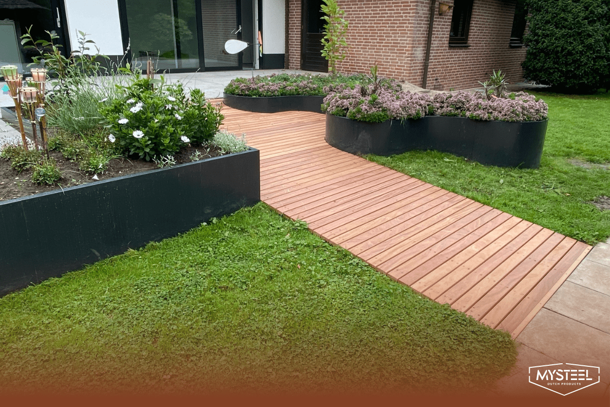 Les murs de soutènement en acier ne sont pas seulement beaux, mais aussi pratiques. Utilisez-les pour des allées ou comme support pour des escaliers et des chemins. Ils offrent la stabilité dont vous avez besoin.