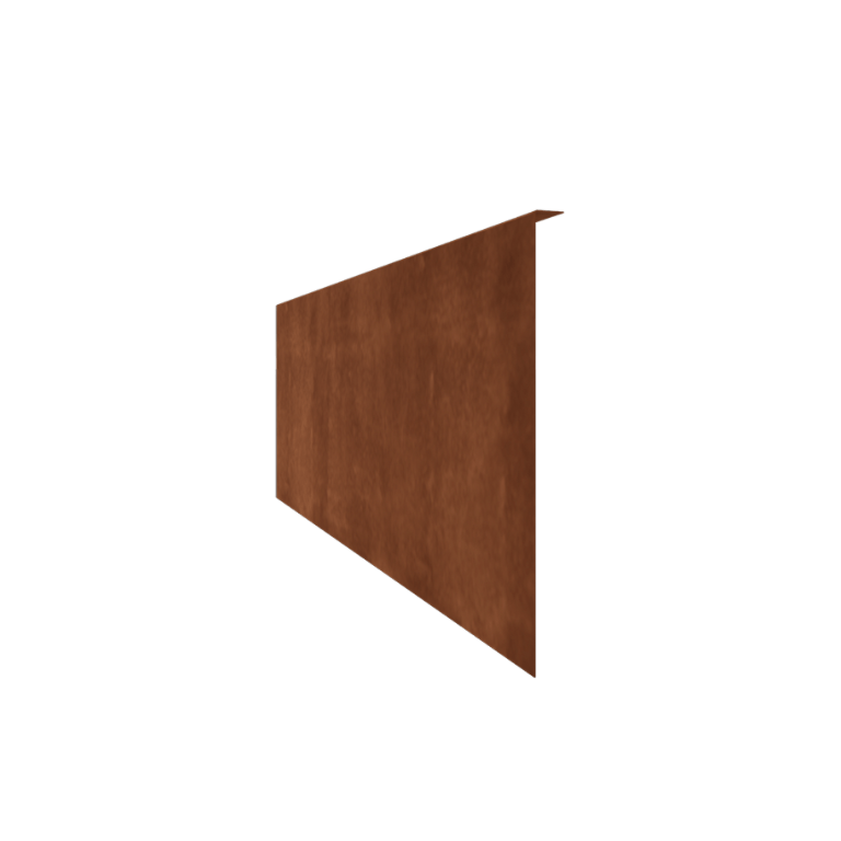 Cette bordure est composée d'acier Corten de haute qualité qui forme une couche protectrice de rouille. Le processus de rouille commence en quelques semaines à quelques mois, révélant une couleur orange-brun chaude. Le processus complet peut durer de 1 à 2 ans mais peut être accéléré avec un accélérateur de rouille. Cette couche de rouille protège durablement le matériau contre les intempéries et augmente considérablement sa durabilité.