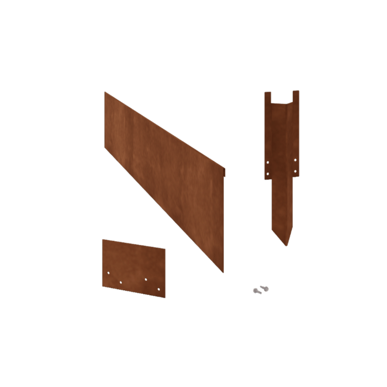 Matériau Ces clôtures sont fabriquées en tôle d'acier Corten-A de haute qualité. Ce type de métal a la propriété unique de former une peau d'oxyde très dense (couche de rouille). La rouille ne peut donc pas traverser le métal. La couche d'oxyde dense protège le matériau plus profond de l'oxygène, ce qui ralentit considérablement l'oxydation, tandis que la corrosion se poursuit. La protection des bords est livrée non traitée, dans la couleur gris métallisé. Le processus de rouille commence dans les deux premiers mois ; aucun traitement n'est nécessaire. Pendant le processus de rouille, la protection des bords peut se décoller. L'acier Corten est un alliage métallique composé de fer auquel ont été ajoutés du cuivre, du phosphore, du silicium, du nickel et du chrome.