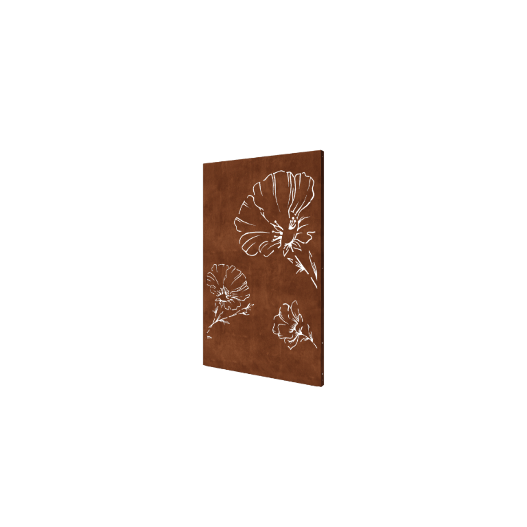 Panneau décoratif en acier Corten - Coquelicot - 120 x 6 x 190 cm