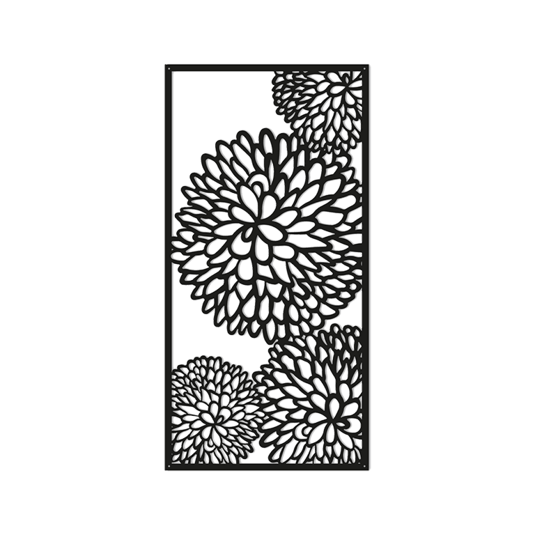 Cet art mural est fabriqué en acier galvanisé sendzimir de haute qualité. Les produits sont recouverts d'un revêtement noir de texture fine et mate. Ce revêtement est résistant aux UV, ce qui permet à l'art mural d'être utilisé à l'extérieur. Ce produit est disponible en 2 tailles différentes, petite ou grande.