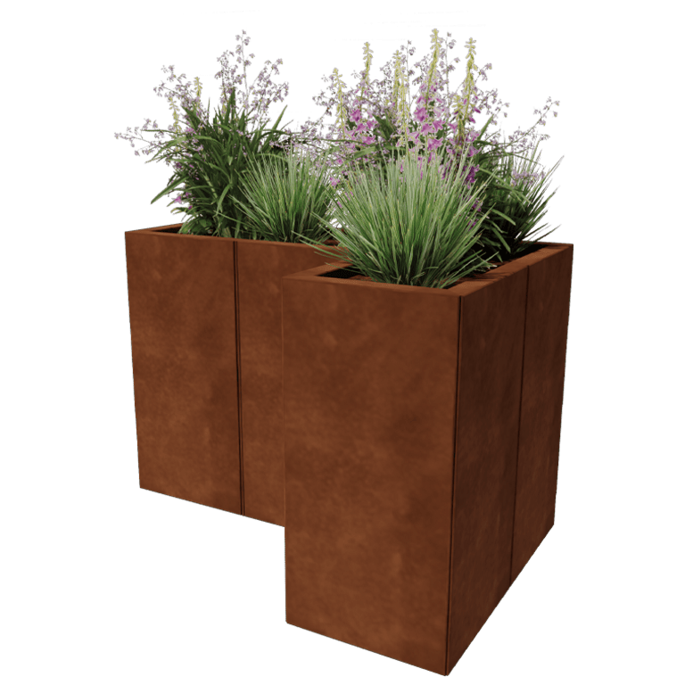 Cette jardinière est une jardinière modulaire en acier livrée en kit. La jardinière est construite à partir de panneaux individuels et de pièces d'angle. Les jardinières peuvent être assemblées de manière totalement invisible. Aucune fixation n'est visible. Grâce à notre système modulaire, de très grandes dimensions sont également possibles. L'utilisation de pièces d'angle permet d'obtenir des formes uniques qui ne sont disponibles nulle part ailleurs en standard. Voir le manuel pour plus d'informations.