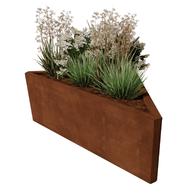 Le type Alaska est une jardinière triangulaire. Le bac a une apparence robuste et une belle finition des bords. La forme triangulaire de l'Alaska convient à tous les types de jardins. Grâce à sa forme triangulaire, l'Alaska est facile à placer dans un coin. Grâce à notre système modulaire, les jardinières sont très faciles à assembler.