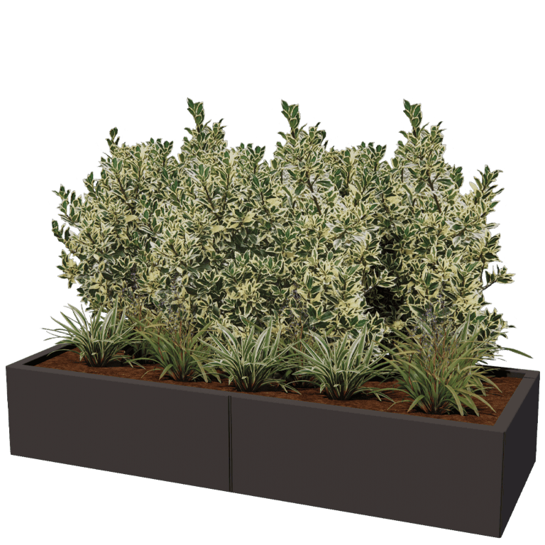 Cette jardinière est une jardinière modulaire en acier livrée en kit. La jardinière est construite à partir de panneaux individuels et de pièces d'angle. Les jardinières peuvent être connectées de manière totalement aveugle. Aucune fixation n'est visible. Notre système modulaire permet également d'obtenir des dimensions très importantes. L'utilisation de pièces d'angle permet d'obtenir des formes uniques qui ne sont disponibles nulle part ailleurs en standard. Voir le manuel pour plus d'informations.