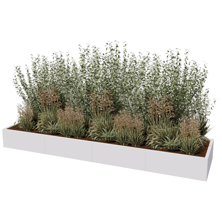 Cette jardinière est une jardinière modulaire en acier livrée en kit. La jardinière est construite à partir de panneaux individuels et de pièces d'angle. Les jardinières peuvent être connectées de manière totalement aveugle. Aucune fixation n'est visible. Notre système modulaire permet également d'obtenir des dimensions très importantes. L'utilisation de pièces d'angle permet d'obtenir des formes uniques qui ne sont disponibles nulle part ailleurs en standard. Voir le manuel pour plus d'informations.