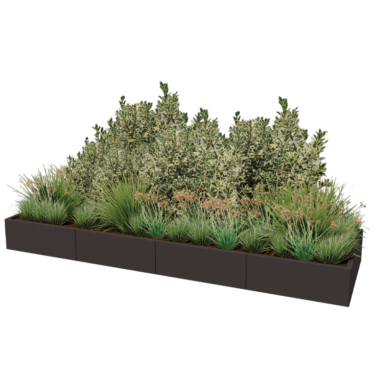 Cette jardinière est une jardinière modulaire en acier livrée en kit. La jardinière est construite à partir de panneaux individuels et de pièces d'angle. Les jardinières peuvent être connectées de manière totalement aveugle. Aucune fixation n'est visible. Notre système modulaire permet également d'obtenir des dimensions très importantes. L'utilisation de pièces d'angle permet d'obtenir des formes uniques qui ne sont disponibles nulle part ailleurs en standard. Voir le manuel pour plus d'informations.