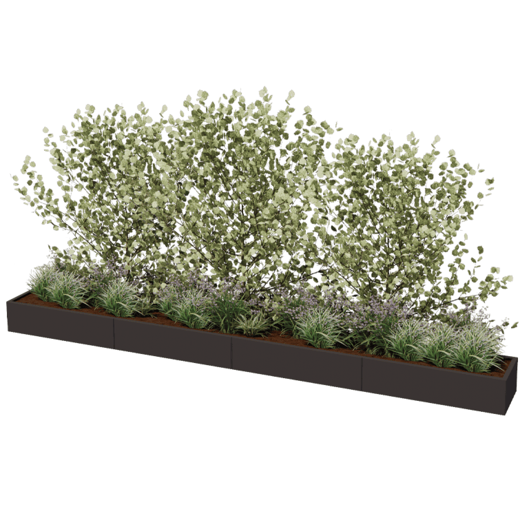 Cette jardinière est une jardinière modulaire en acier livrée en kit. La jardinière est construite à partir de panneaux individuels et de pièces d'angle. Les jardinières peuvent être connectées de manière totalement aveugle. Aucune fixation n'est visible. Notre système modulaire permet également d'obtenir des dimensions très importantes. L'utilisation de pièces d'angle permet d'obtenir des formes uniques qui ne sont disponibles nulle part ailleurs en standard. Voir le manuel pour plus d'informations.